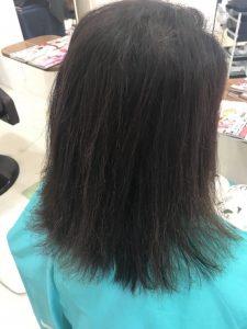 青森県弘前市の美容室フルブルーム エアーストレート毛染めと縮毛矯正を繰り返しされているお客様です。 ほぼアイロン毛で硬い感じの質感でしたが…エアースト.....more