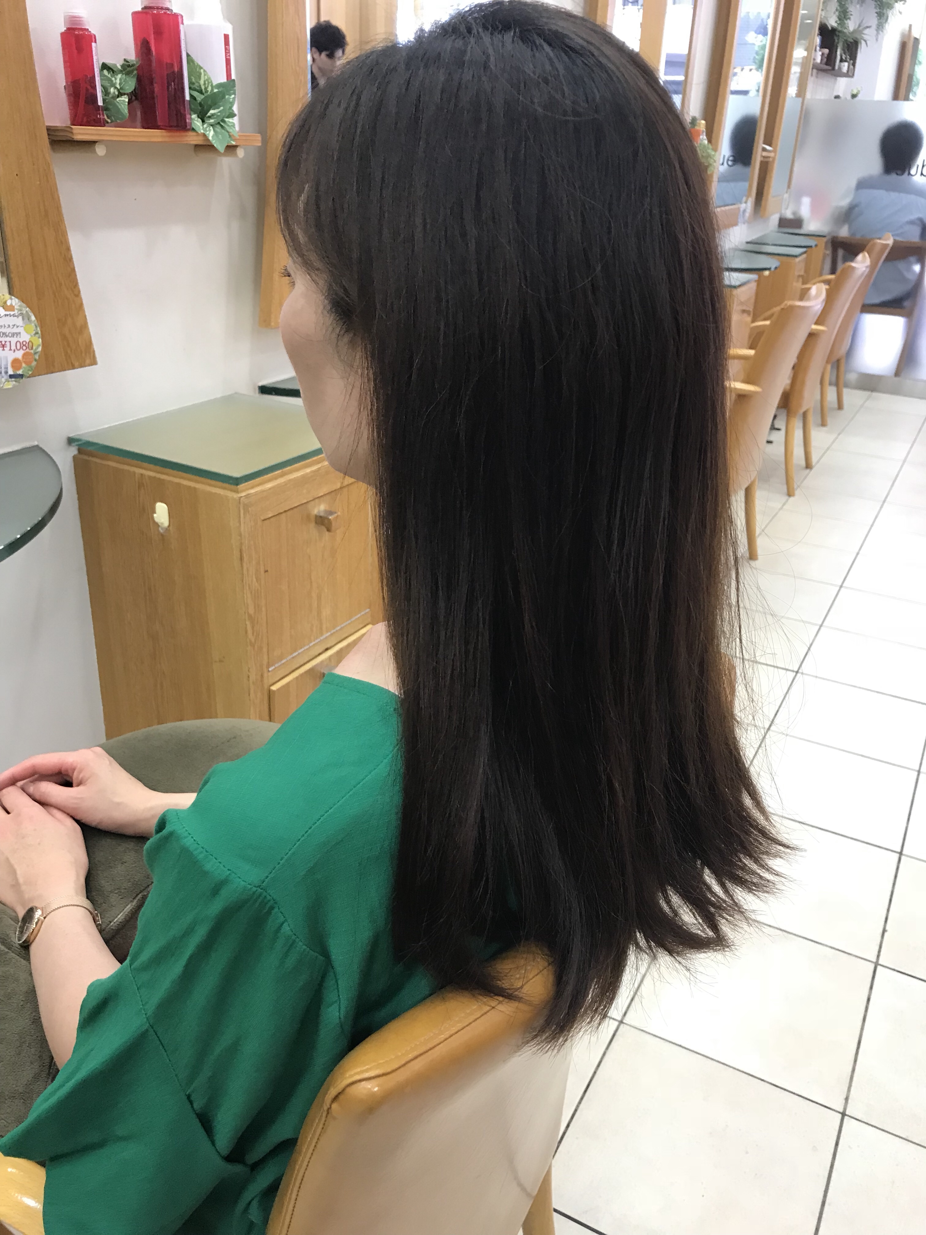 エアーストレートとパーマ柔らかなストレートで春ヘアずっと長いスタイルを楽しんでおられた、お客様です。お仕事では髪をまとめないといけなくて、まとめた時に.....more