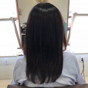青森県弘前市の美容室フルブルーム エアーストレート毛染めと縮毛矯正を繰り返しされているお客様です。 ほぼアイロン毛で硬い感じの質感でしたが…エアースト.....more